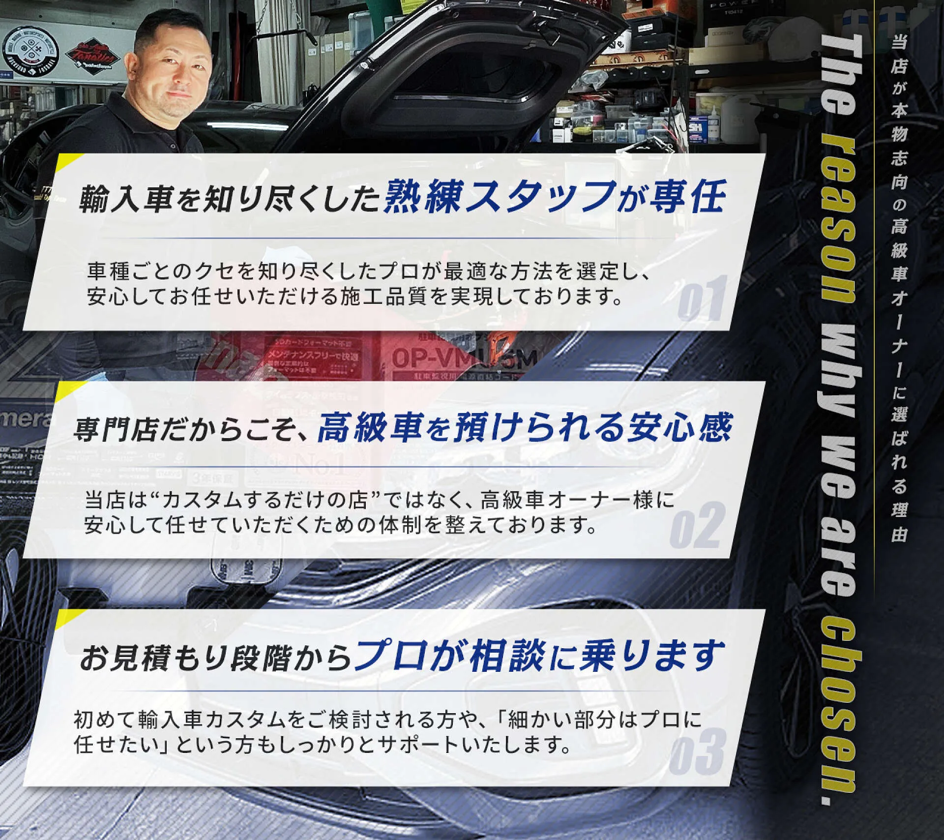 高級車のカスタムでは、「どこに預けても同じ」ではありません。