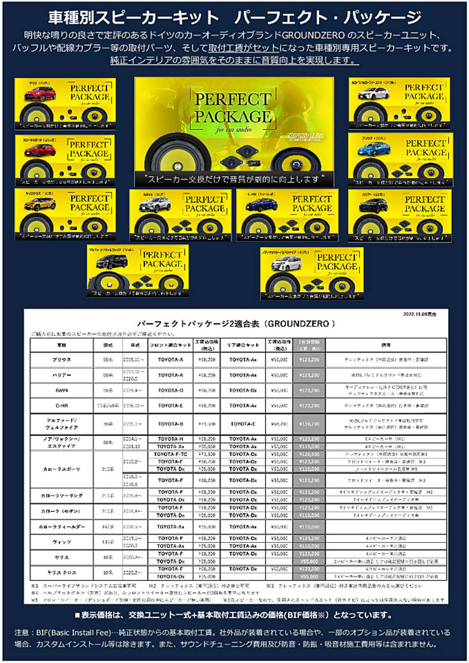 型式と備考欄をご確認して頂き、お客様の車種と一致していましたら、こちらの記載されている適合キットの販売・取付が可能となりますので必ずご確認ください。